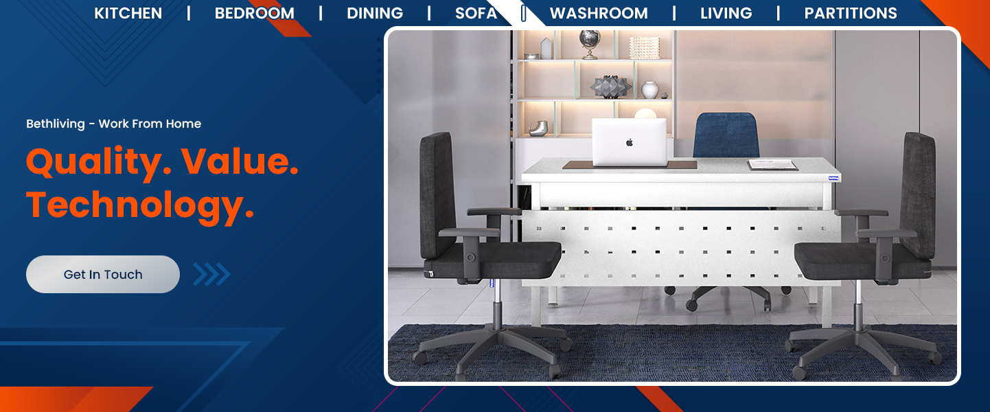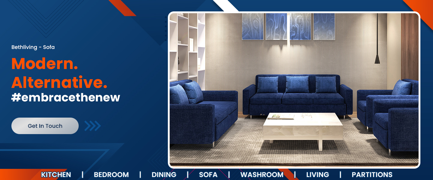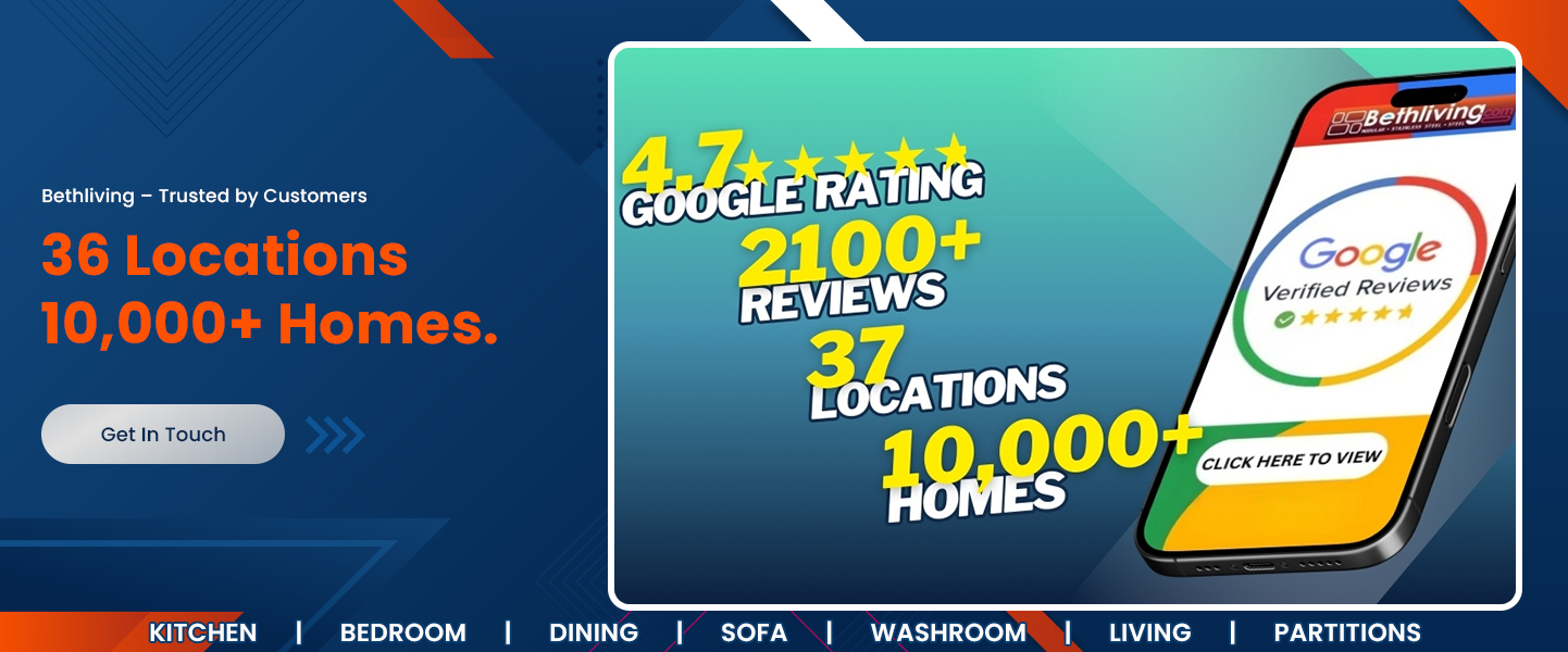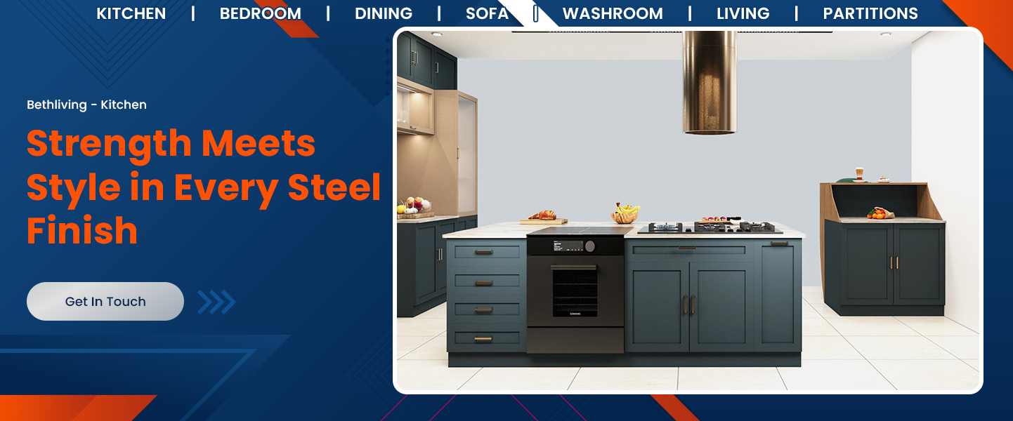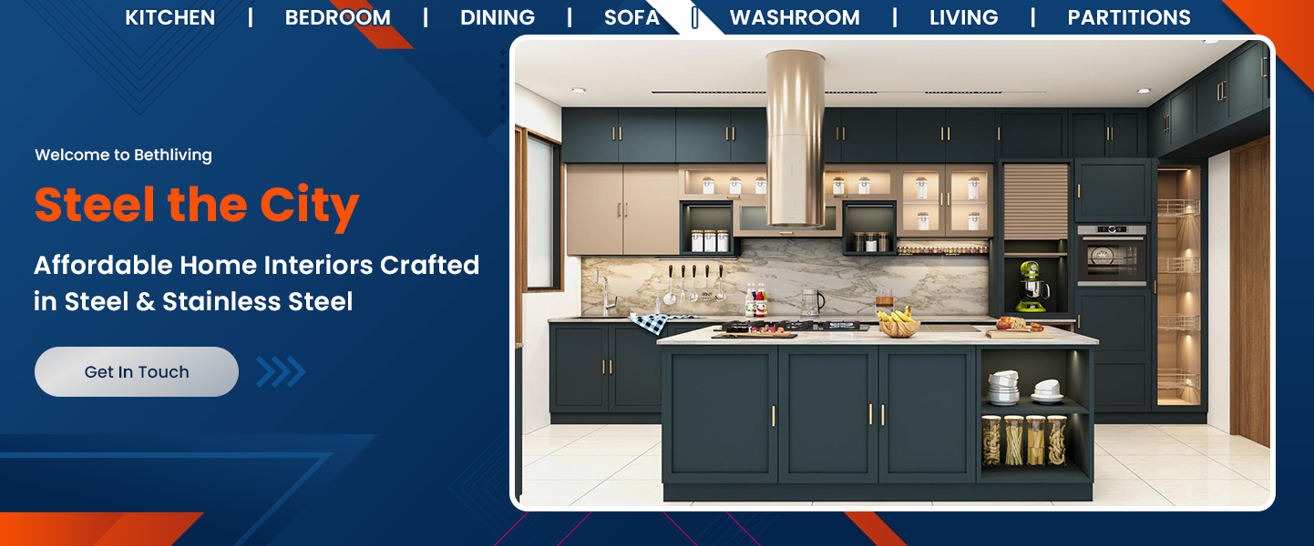 Manufactured from Stainless Steel, Steel, and smart combinations of the two, Bethliving brings you a complete home interior solution — from kitchens, bedrooms, dining spaces, sofas, and living rooms, to washrooms and even partitions. We manufacture scientifically and engineer every product to exacting standards, while completely avoiding the use of PUF in our products. Step into any of our Customer Experience Centres, make your choice, and open the door to a new way of life like never before.